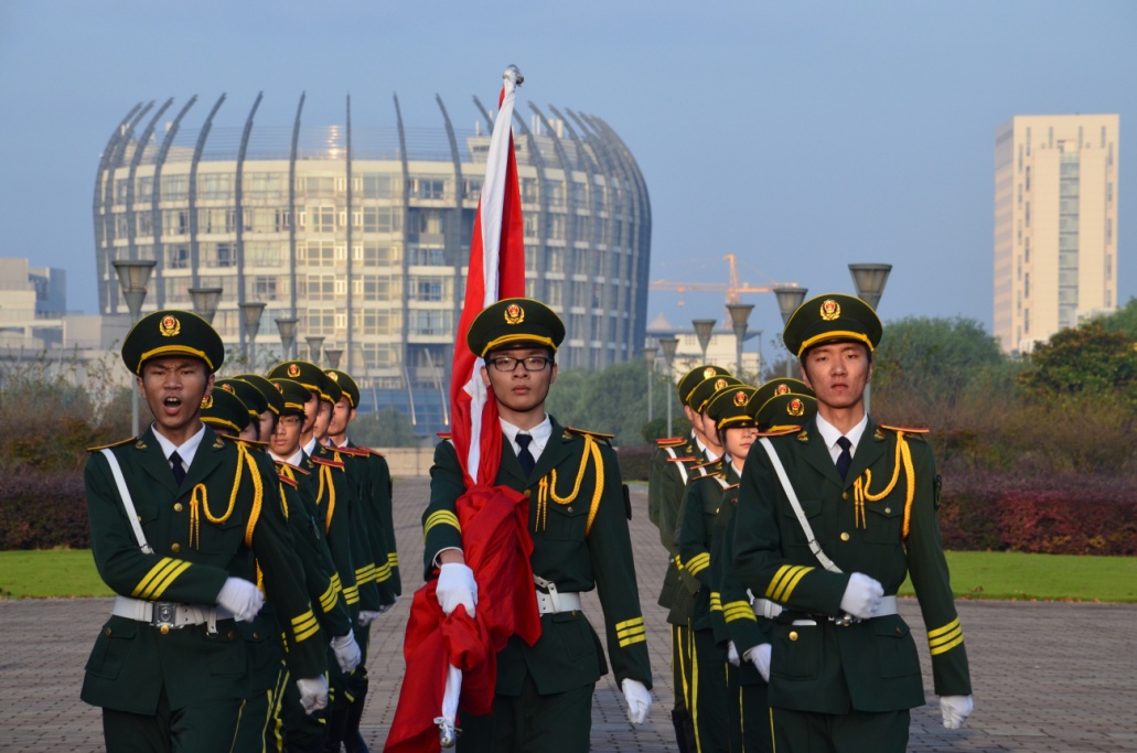和往常一样,清晨7点,我校国旗班班长、信息学院2011级本科生张英兵和队员们在校园上空又一次准时升起了五星红旗;和往常不一样,今天,10月1日,祖国的生日,担任国庆升旗手的张英兵,心中有无限的光荣。他自豪地告诉记者:“在祖国65岁生日到来之际,我们以护卫国旗的方式祝祖国母亲生日快乐!”