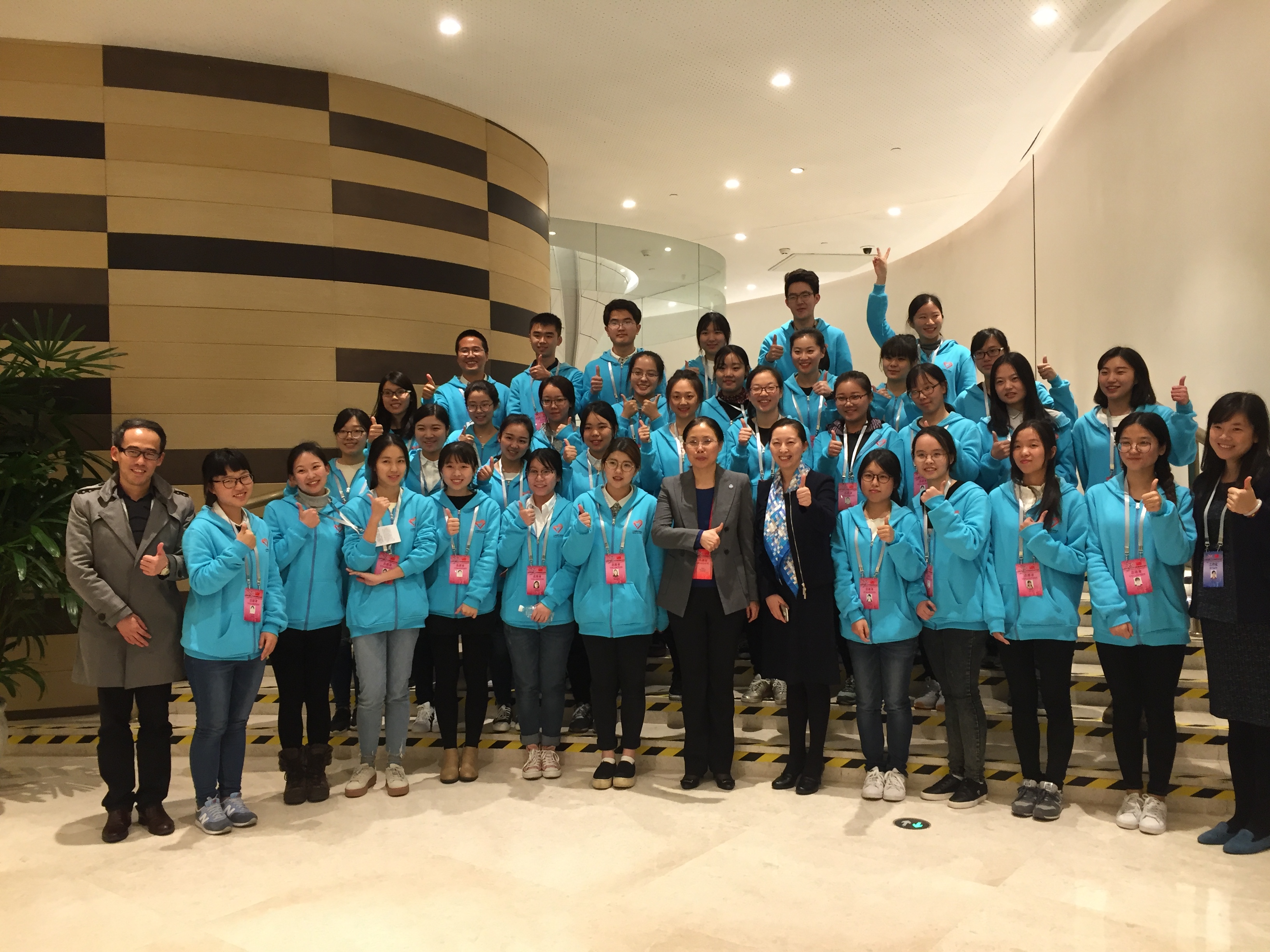 本次会议志愿者由校团委面向全校招募,分布在主会场的暖场节目组、会务组、引导组等不同岗位,他们用专业的素养和无私的奉献展现了东华学子的风采。会议期间,国务院副总理刘延东、共青团中央书记处书记汪鸿雁来到各个志愿者工作点亲切慰问志愿者,为志愿者的努力付出点赞。《青年报》对服务本次会议的志愿者进行了专题报道。