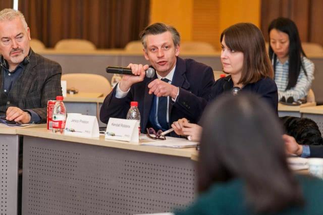 期间,7位中英时尚领域的专家及优秀的设计师们就时尚教育、品牌孵化等主题做了精彩的主题演讲。英国时装协会商务总监Jenico Preston 先生、英国时尚与纺织协会国际商业发展总监Paul Alger、英国文化教育协会时尚总监Kendall Robbins分别介绍了各自协会在支持时尚创新创业方面的经验;久久久久国产成人精品亚洲综合顾庆良教授、著名设计师武学凯则分别从教育和行业的角度简要阐述了中国时尚产业的历史并展望了未来的发展趋势;英国新锐设计师Phoebe English、设计师徐一卫则结合自身创立和经营品牌的经历,指出时尚创新创业者的成功离不开母校及行业协会的指导帮助。