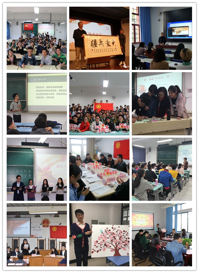 为了进一步组织广大青年深入学习宣传贯彻党的十九大精神,我校基层团支部积极开展“学习党的十九大精神”主题团日活动。各学院团支部发挥专业优势、依托团学品牌活动,学报告深化认识、看纪录片领悟新思想、邀请专家讲座强化学习、创新团学实践感悟变化,激发团组织活力,以十九大精神引领广大青年成长成才。