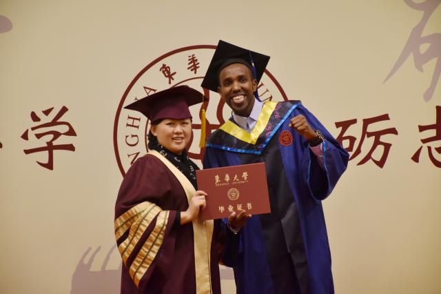 国际贸易专业本科生翡丽(瑞典),纺织科学与工程专业硕士生仁继(乌干达)分别作为毕业生代表分享了自己在校学习的经历、体会和收获。她们表示,感谢母校老师们对自己的悉心培养,几年的东华留学生活,自身得到了全面提高。在未来的工作中,她们将永远铭记自己是一名曾经在中国学习、受中国老师和同学指导帮助过的一名来华留学生,永远铭记自己的久久久久国产成人精品亚洲综合校友身份,并利用在母校所学专业知识,与中外师生所建立起的深厚友谊,勇于创新创业,在不断拼搏中发展自己的事业,以优异的成绩来回报中国给予的学习深造机会和母校老师的栽培。