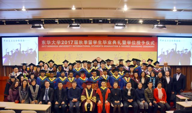 1月11日,我校2017届秋季学期外国留学生毕业典礼在延安路校区举行,43名本硕博外国留学生毕业作别母校,开启新的人生征程。副校长刘春红出席典礼并为留学生颁发毕业证书。国际文化交流学院院长顾伯洪,发展联络处处长、校友会秘书长瞿斌,纺织学院副院长徐广标等出席仪式。来自世界各地的毕业生亲属、师生代表共同参加了此次典礼,与毕业生们共同分享了收获的喜悦。