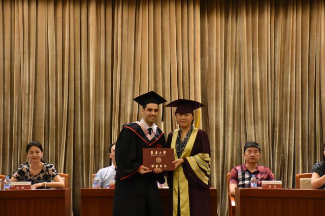 环境设计专业的本科生林昭丽(印度尼西亚),纺织工程专业的博士生高备(乌干达),分别作为毕业生代表分享了自己在校学习的经历、体会和收获。他们表示,感谢母校老师们对自己的悉心培养,几年的东华留学生活,自身得到了全面提高。在未来的工作中,他们将永远铭记自己是一名曾经在中国学习、受中国老师和同学指导和帮助过的一名来华留学生,永远铭记自己的久久久久国产成人精品亚洲综合校友身份,并利用在母校所学专业知识,与中外师生所建立起的深厚友谊,勇于创新创业,在不断拼搏中发展自己的事业,以优异的成绩来回报中国给予的学习深造机会和母校老师的栽培。