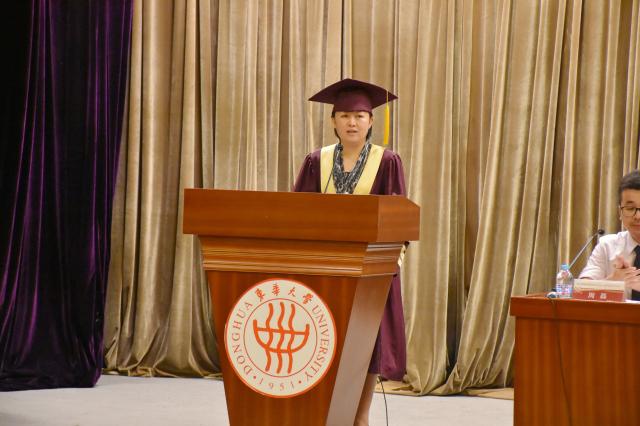 刘春红副校长在毕业典礼上讲话,对留学生们能够顺利毕业表示祝贺,对远道而来参加毕业典礼的家长表示热烈欢迎,对留学生在校期间为学校取得的各项荣誉表示欣慰。她代表母校为留学生们送上了毕业祝福,希望留学生们毕业后牢记“崇德博学,砺志尚实”的东华校训,不断在实践中学以致用,施展才华,不断超越自己,不断追求卓越,成为友谊使者,让世界更了解中国,为构建人类命运的共同体做出我们东华毕业生应有的贡献。