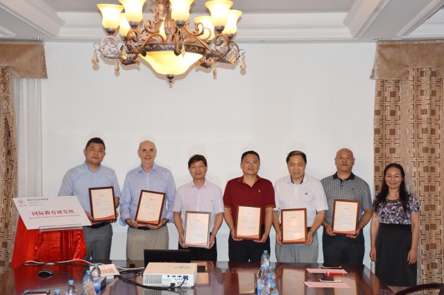 国际教育研究所由国际文化交流学院设立,将聚焦汉语国际推广、留学生管理、国别和区域研究等国际教育领域的学术研究。李斌荣为首任所长胡清国教授颁发聘书,科研处副处长李凌燕为专家团队颁发聘书。