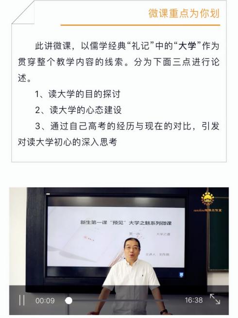 (易班迎新主页和入学教育系统,学生通过手机在线观看新生第一课)