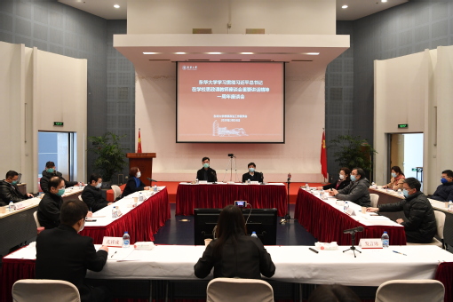 3月16日,我校在松江校区召开学习贯彻习近平总书记在学校思政课教师座谈会重要讲话精神一周年座谈会,进一步落实立德树人根本任务,统筹推进更高质量的思想政治理论课建设和学校思想政治工作。党委书记刘承功、校长俞建勇出席会议并讲话,党委副书记刘淑慧、崔运花,副校长邱高、卿凤翎、陈南梁、舒慧生出席会议。刘淑慧主持会议。校思想政治工作委员会成员部门负责人、马克思主义学院负责人以及思政课教师代表参加现场会议,马克思主义学院设分会场,全体思政课教师以网络视频形式参会。