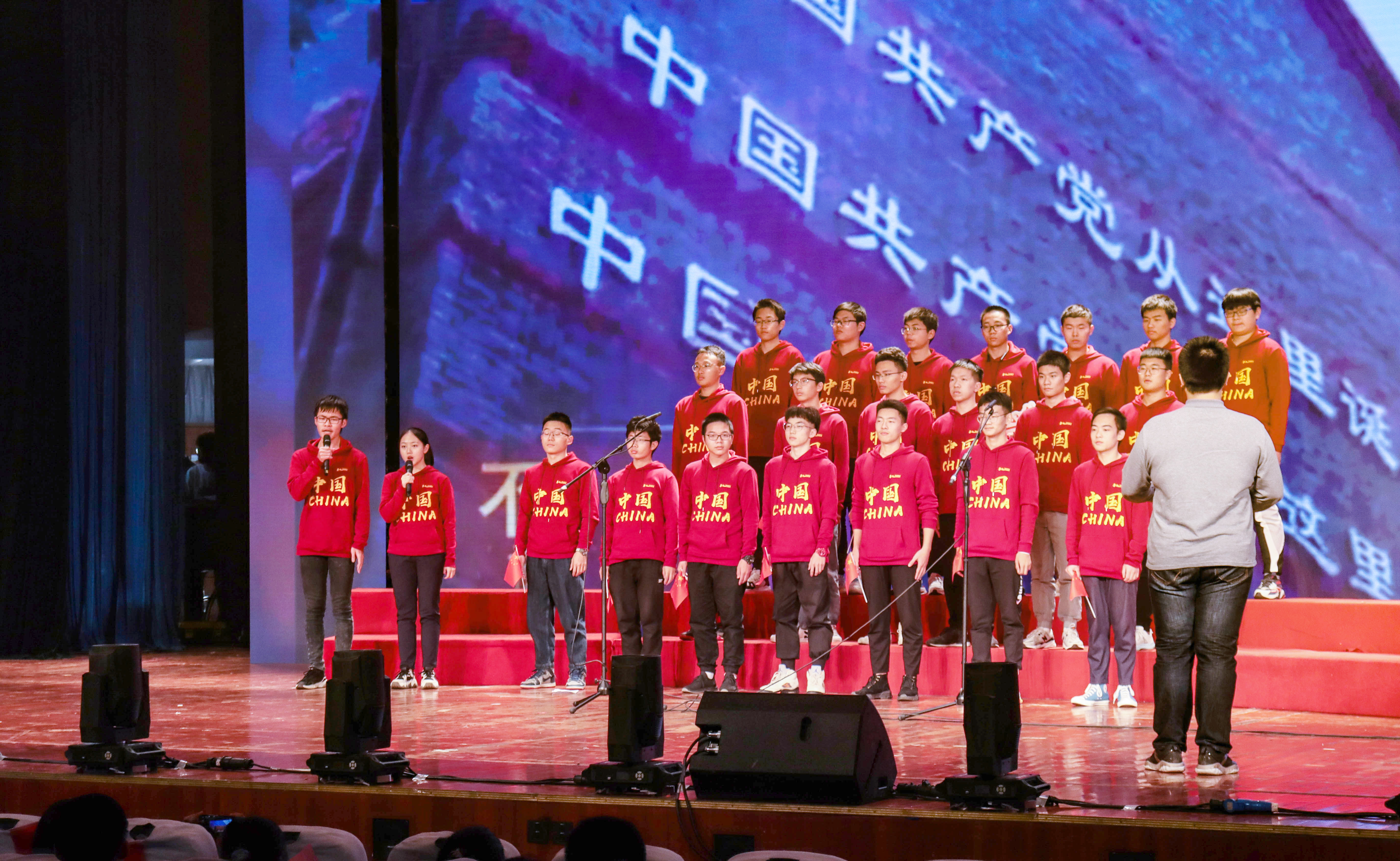 学生身着原创设计的班服演绎《不忘初心》