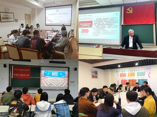 教师领讲有知有味。围绕党史重大事件和学生实际,学院专业课教师、辅导员以中国共产党党史上的系列“第一”为立足点,依托主题班会、理论宣讲、对话访谈、主题党课等形式,自主设计“初心如磐:百名机械人说百年”专题党课栏目,将党史学习教育融入思想政治教育全过程,打造有知有味的“党史融”大思政育人课堂。目前已推出《从“亢慕义斋”到中国共产党》、《从党史中感悟劳动精神》《缪伯英:中共第一位女党员》《李大钊:马克思主义的首倡者》、《南昌起义:熔铸中国共产党战斗属性的历史起点》《党旗的诞生及历史演进》等十余期专题党课,不断推进思想政治教育与党史学习教育迈向新高度。