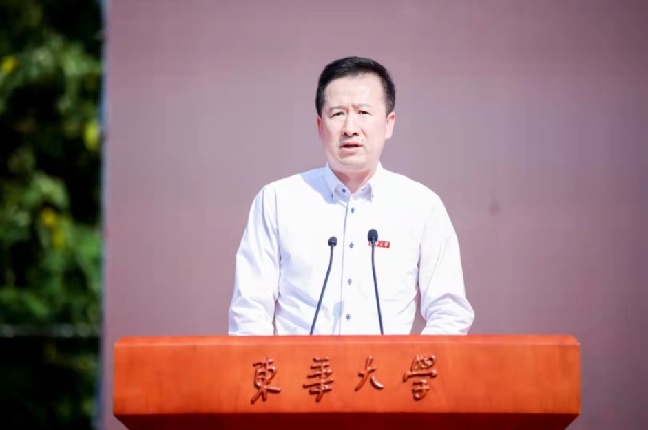 在校生代表、纺织学院2020级研究生王天增以自己五年的东华求学经历,为新生送上真挚寄语:勇于实践、勇于创造,不辜负青春年华,在中华民族伟大复兴的奋斗征程中发出东华人的时代最强音。
